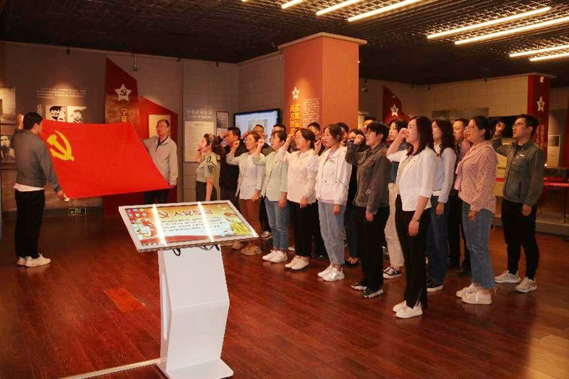 紀念館參觀(guān)結束后,全體黨員在莊嚴肅穆的黨旗前,重溫入黨誓詞,莊嚴宣誓“我志愿加入中國共產(chǎn)黨,擁護黨的綱領(lǐng),遵守黨的章程,履行黨員義務(wù),執行黨的決定,嚴守黨的紀律,……隨時(shí)準備為黨和人民犧牲一切,永不叛黨”。字字鏗鏘有力,句句慷慨激昂,表達著(zhù)每位黨員對黨的忠誠熱愛(ài)和為共產(chǎn)主義事業(yè)奮斗終身的決心。