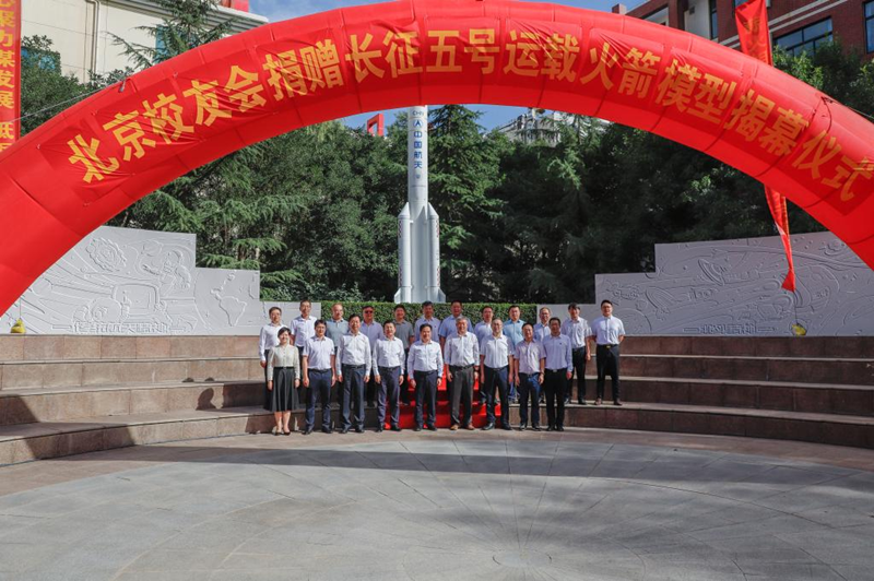 北京地區校友會(huì )捐贈長(cháng)征五號火箭模型揭幕儀式在我校天佑園廣場(chǎng)舉行。作為此次廣場(chǎng)改造的設計單位,公司董事長(cháng)唐勇軍受邀出席。