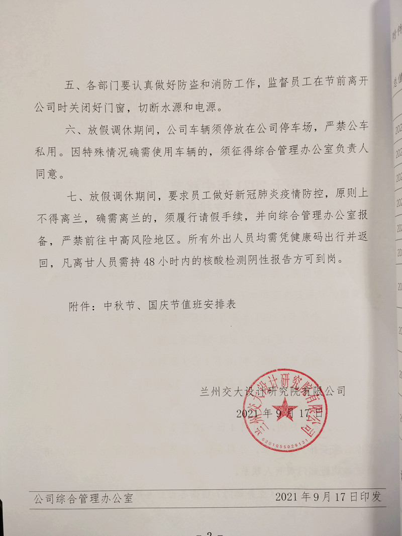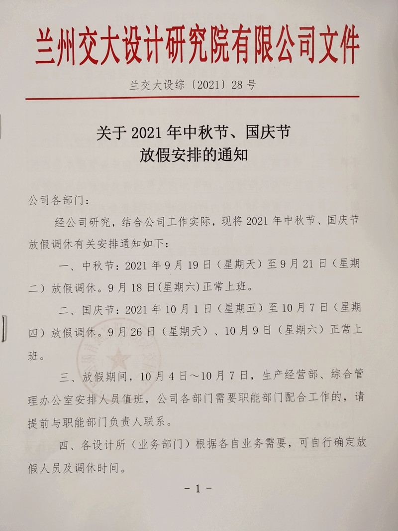 關(guān)于2021年中秋節、國慶節放假安排的通知